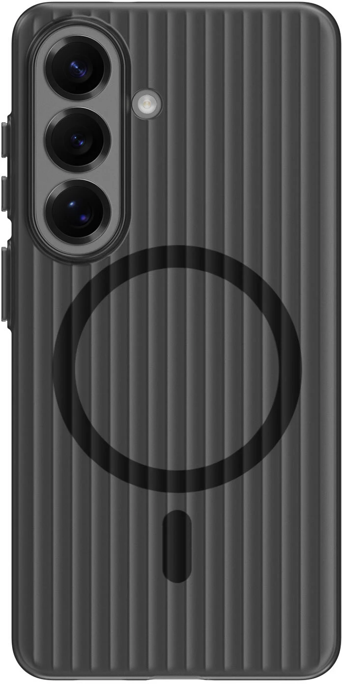Das 4smarts Aero Riffel-Design Case für Samsung Galaxy S26+ kombiniert minimalistisches Design mit hochwertiger Funktionalität – inspiriert vom ikonischen Look edler Aluminium-Reisekoffer.
