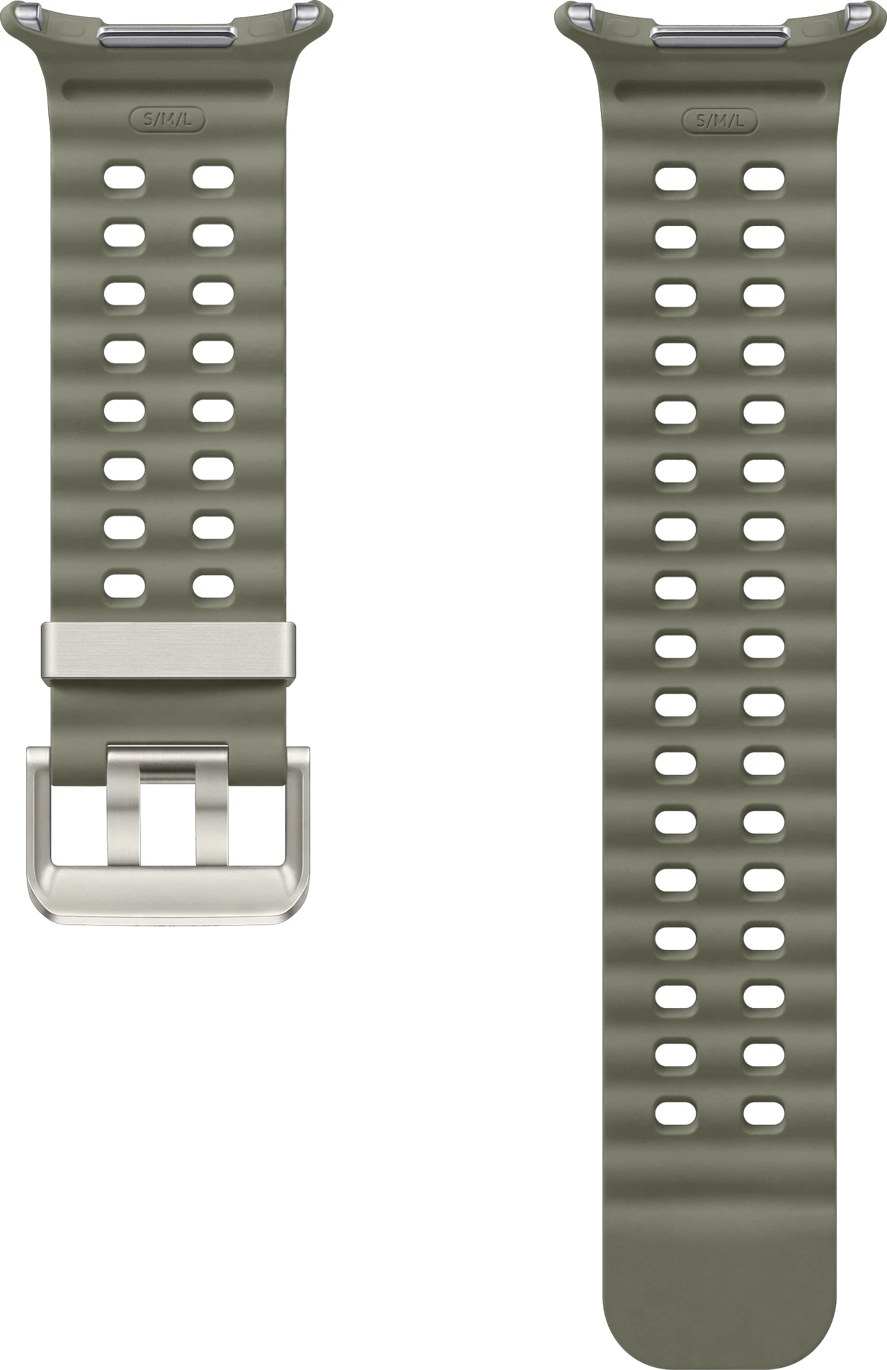Das Marine Band für die Galaxy Watch Ultra besteht aus speziellem Nitrilkautschuk (HNBR) und eignet sich hervorragend für schweißtreibende Workouts oder im Alltag. Es ist unempfindlich gegenüber Temperaturänderungen, sowie verschleiß- und wasserbeständig. Mit Luftlöchern für zusätzliche Luftzirkulation sorgt das Marine Band für angenehmen Tragekomfort am Handgelenk, damit du Herausforderungen mit Bravour meistern kannst. Durch das Schnellwechselsystem, kannst du innerhalb von Sekunden das Band ohne weitere Hilfsmittel und mit nur einem Knopfdruck wechseln. Wähle ein Armband das zu deinem Stil passt und verleihe deiner Galaxy Watch Ultra einen persönlichen Touch.